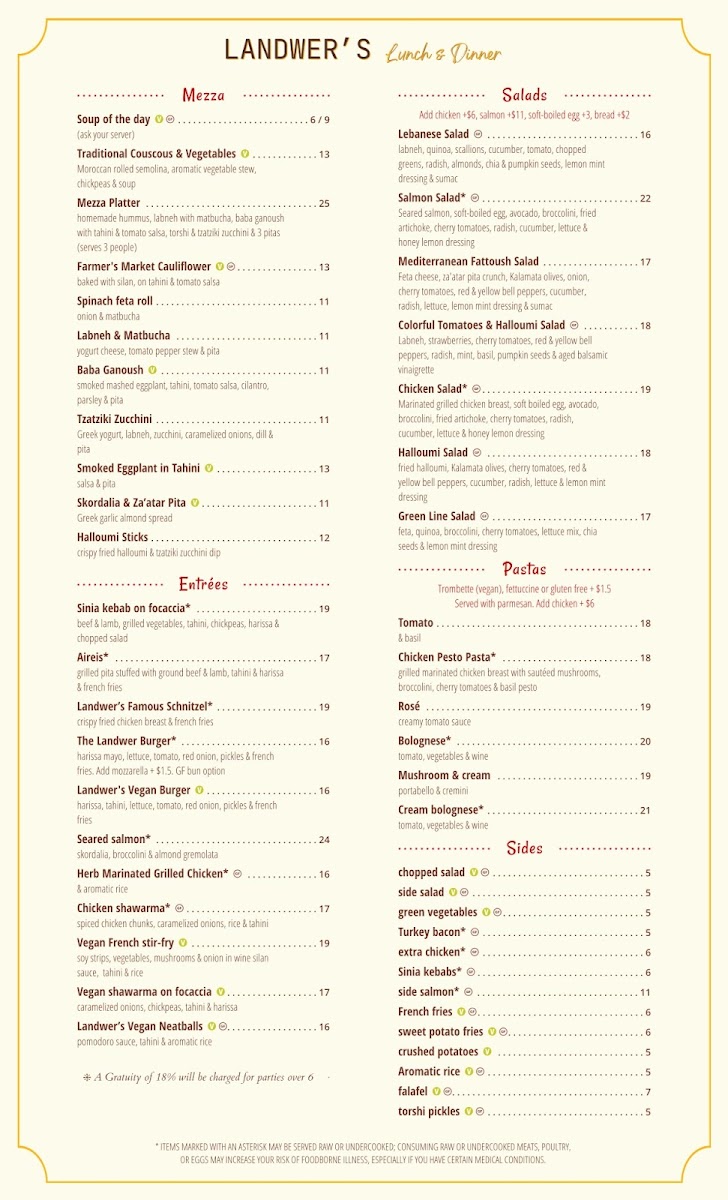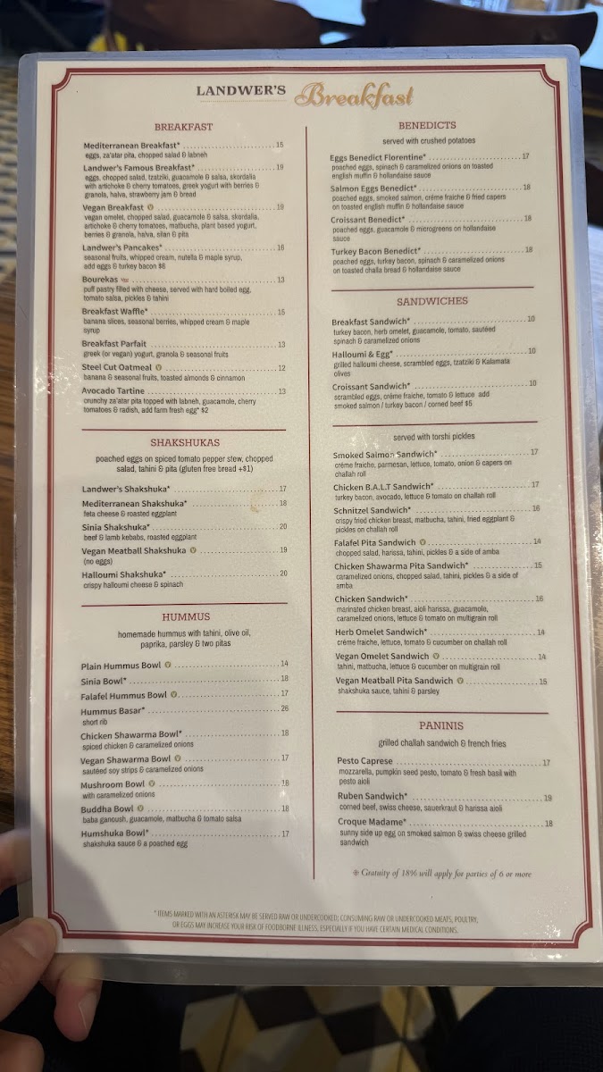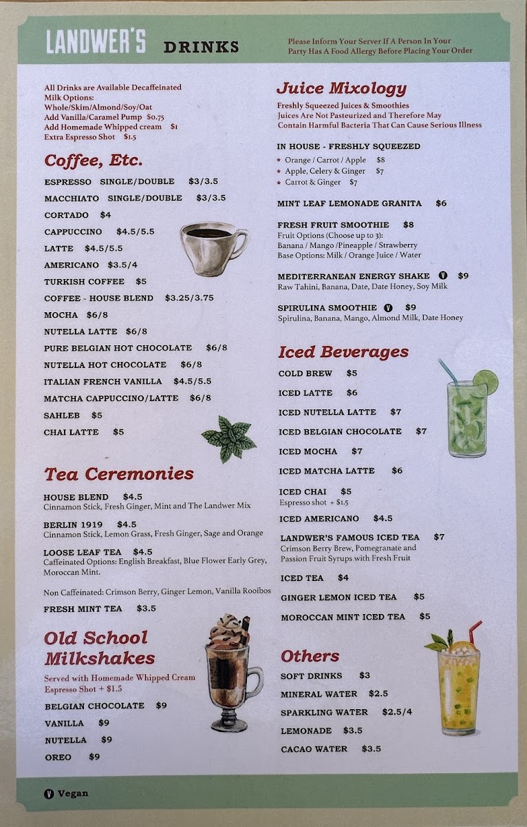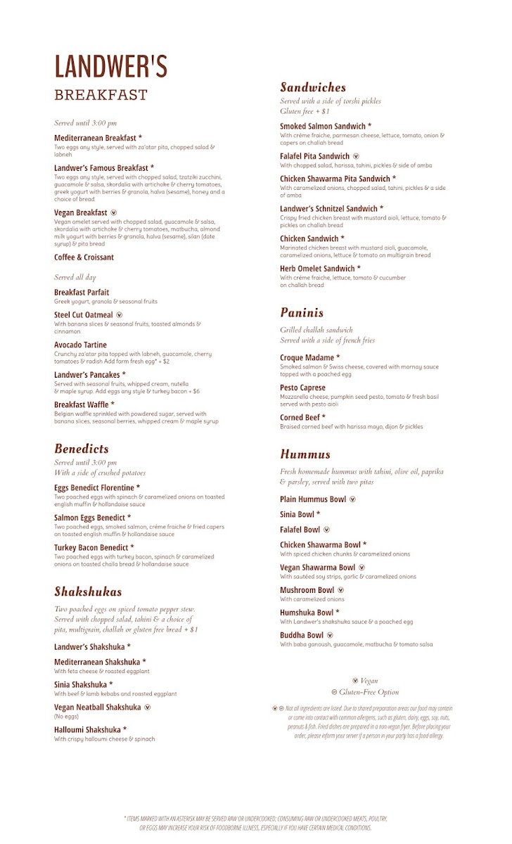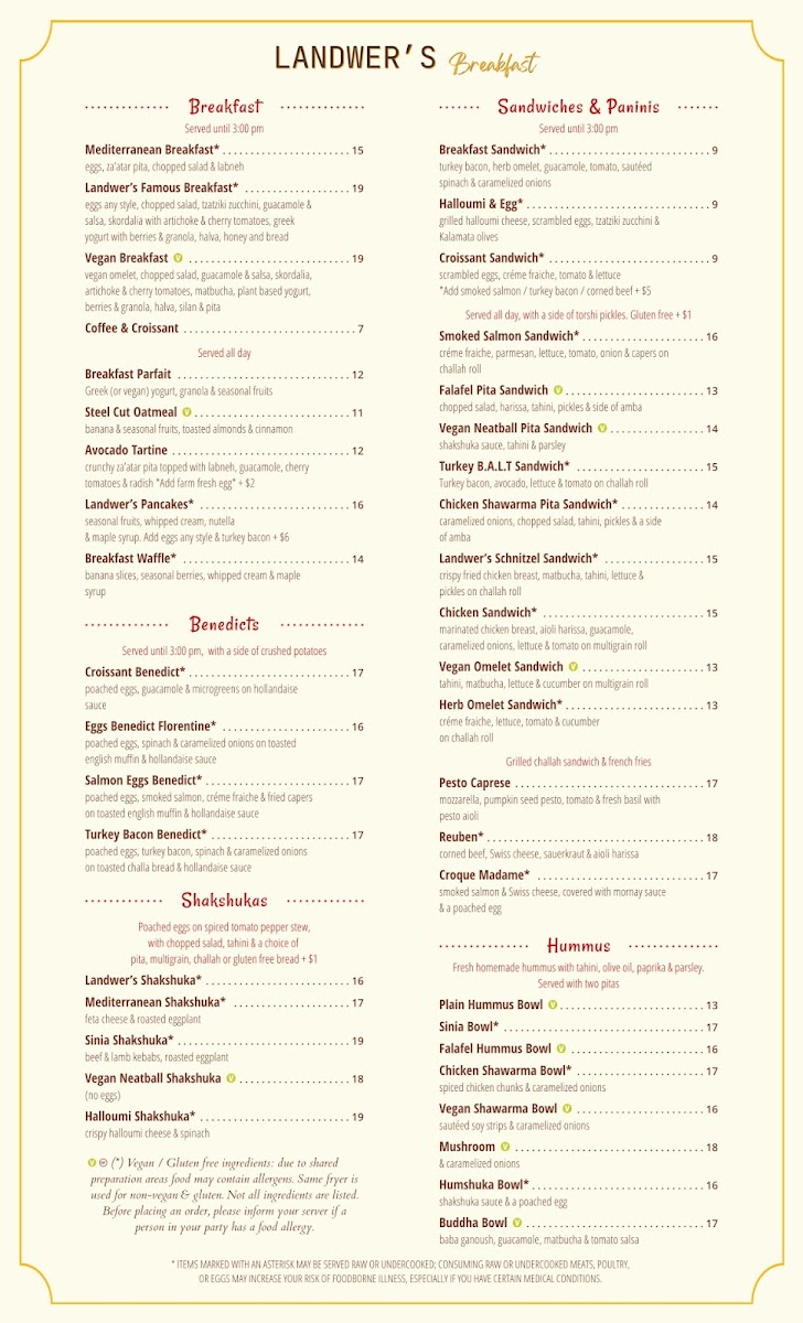 Cafe Landwer - MA 02215 Menu